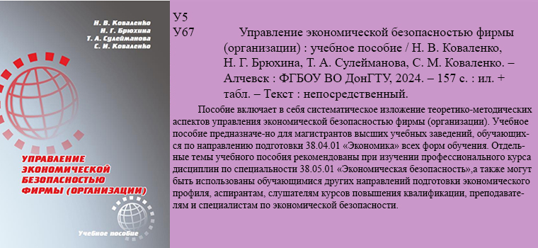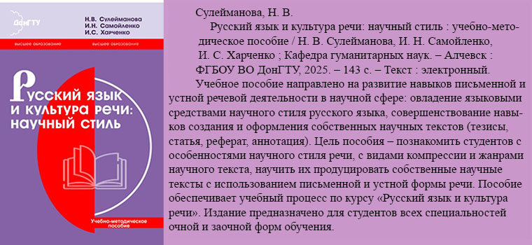 Федеральное государственное бюджетное «ДОНБАССКИЙ ГОСУДАРСТВЕННЫЙ ТЕХНИЧЕСКИЙ УНИВЕРСИТЕТ» Научная библиотека |